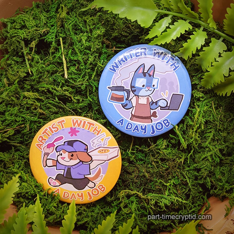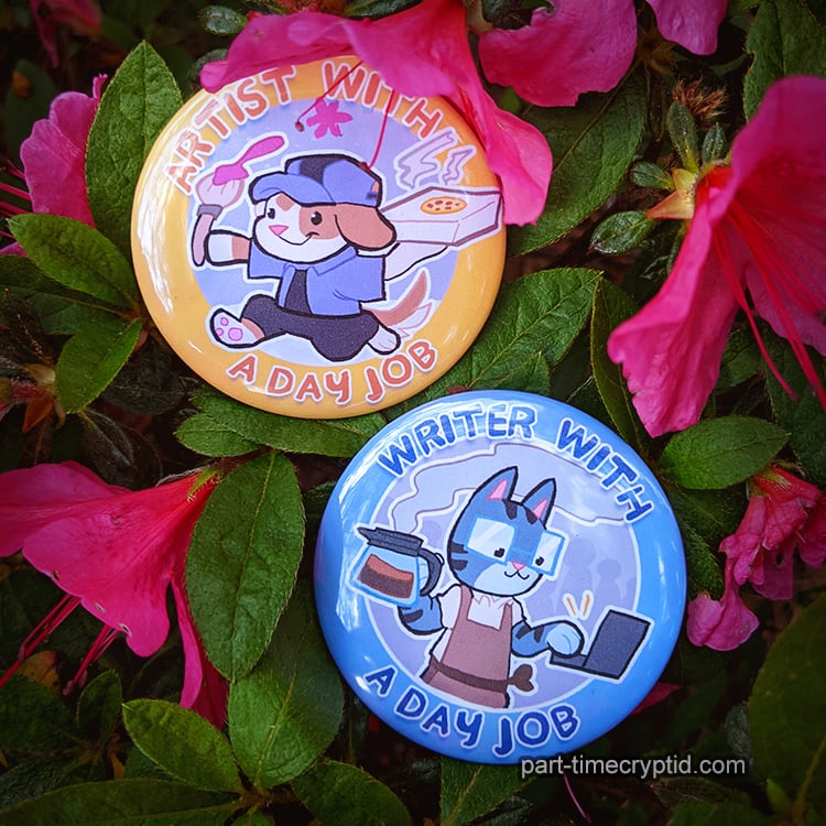 As a proud creator with a day job (there's no shame in paying the bills) you should show your tenacity with pride! Grab one of these buttons to tell the world that despite needing to make a living- you still pursue your craft!