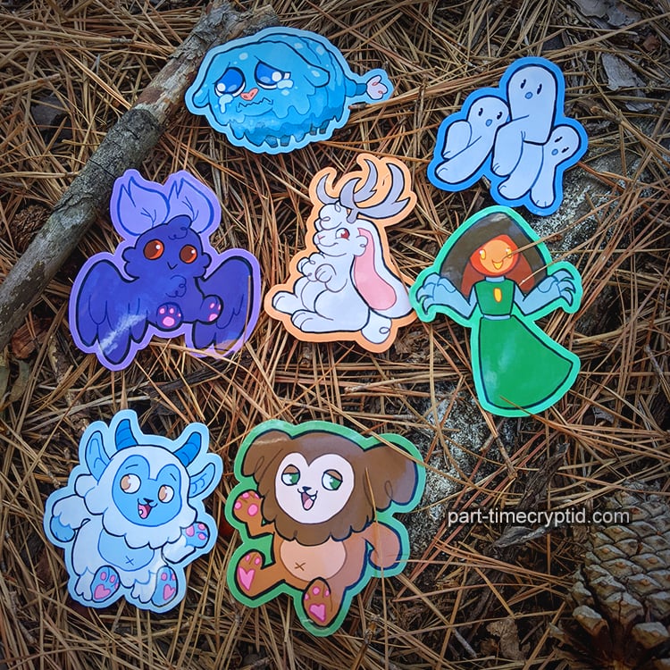 The one(s), the only(s) - the CRYPTID SQUAD! Our brave part-time cryptids have made an appearance in 3" waterproof Vinyl Sticker form!