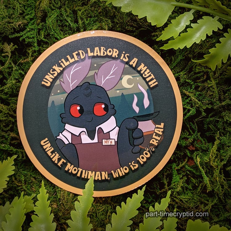3" Unskilled Labor is a Myth Mothman Vinyl Stickers