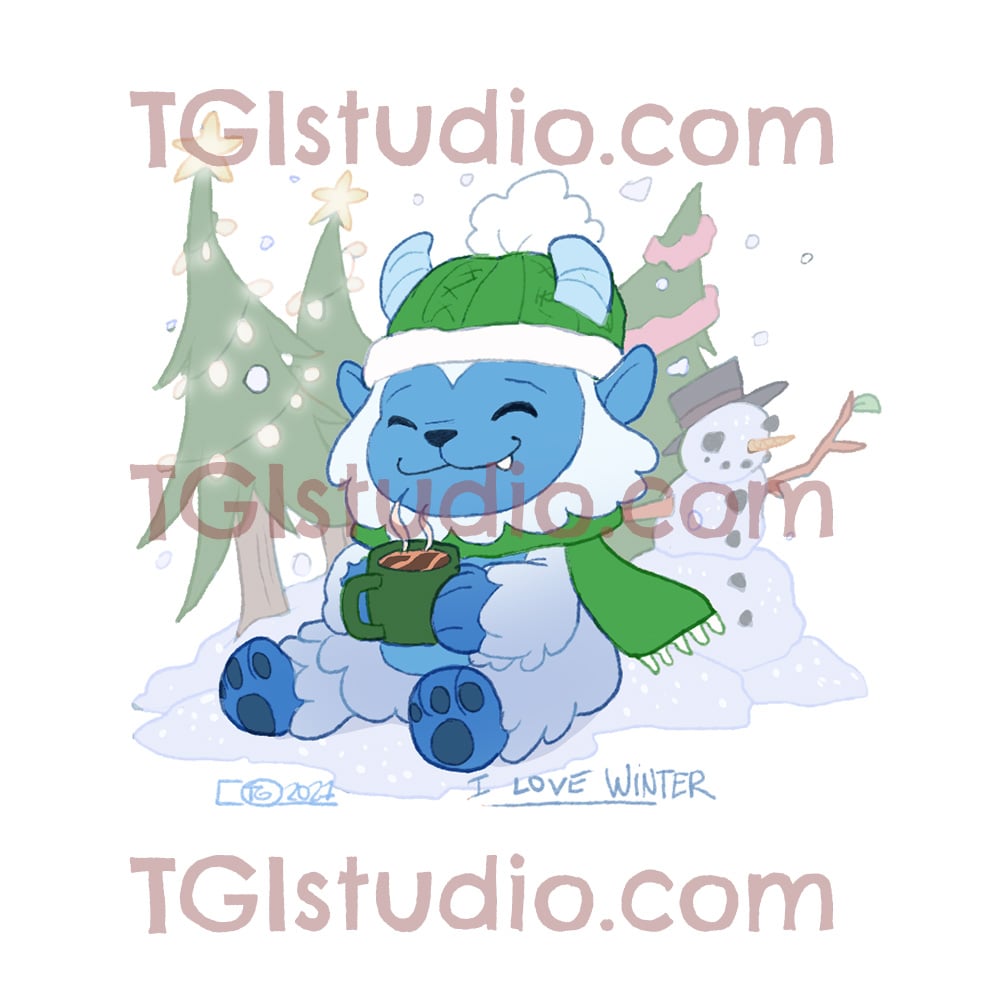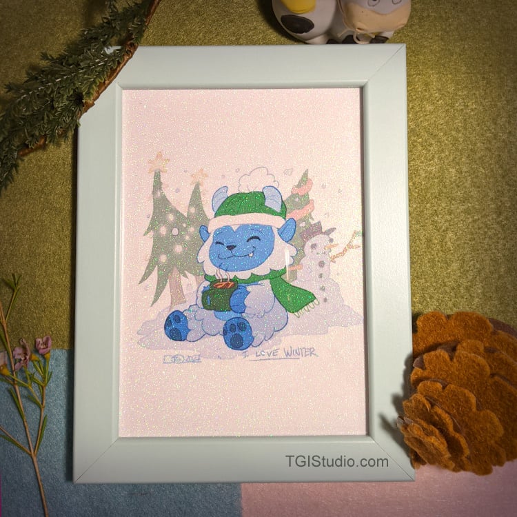 Abominable Snowman - "I love winter" Seasonal Glitter Print